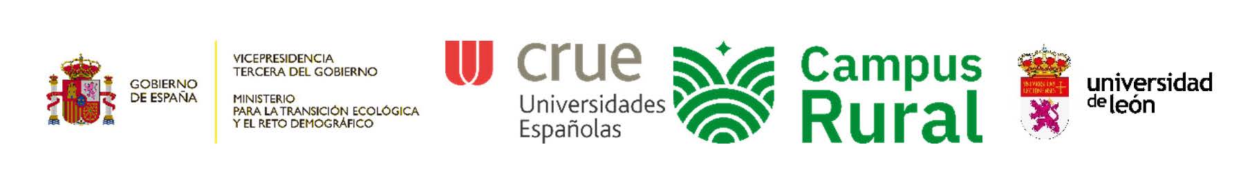 El programa CAMPUS RURAL es una iniciativa desarrollada por el Ministerio para la Transición Ecológica y el Reto Demográfico (MITERD), en colaboración con el Ministerio de Ciencia, Innovación y Universidades, la Conferencia de Rectores de Universidades Españolas (CRUE) y la mayoría de las universidades españolas, entre ellas la UNIVERSIDAD DE LEÓN.